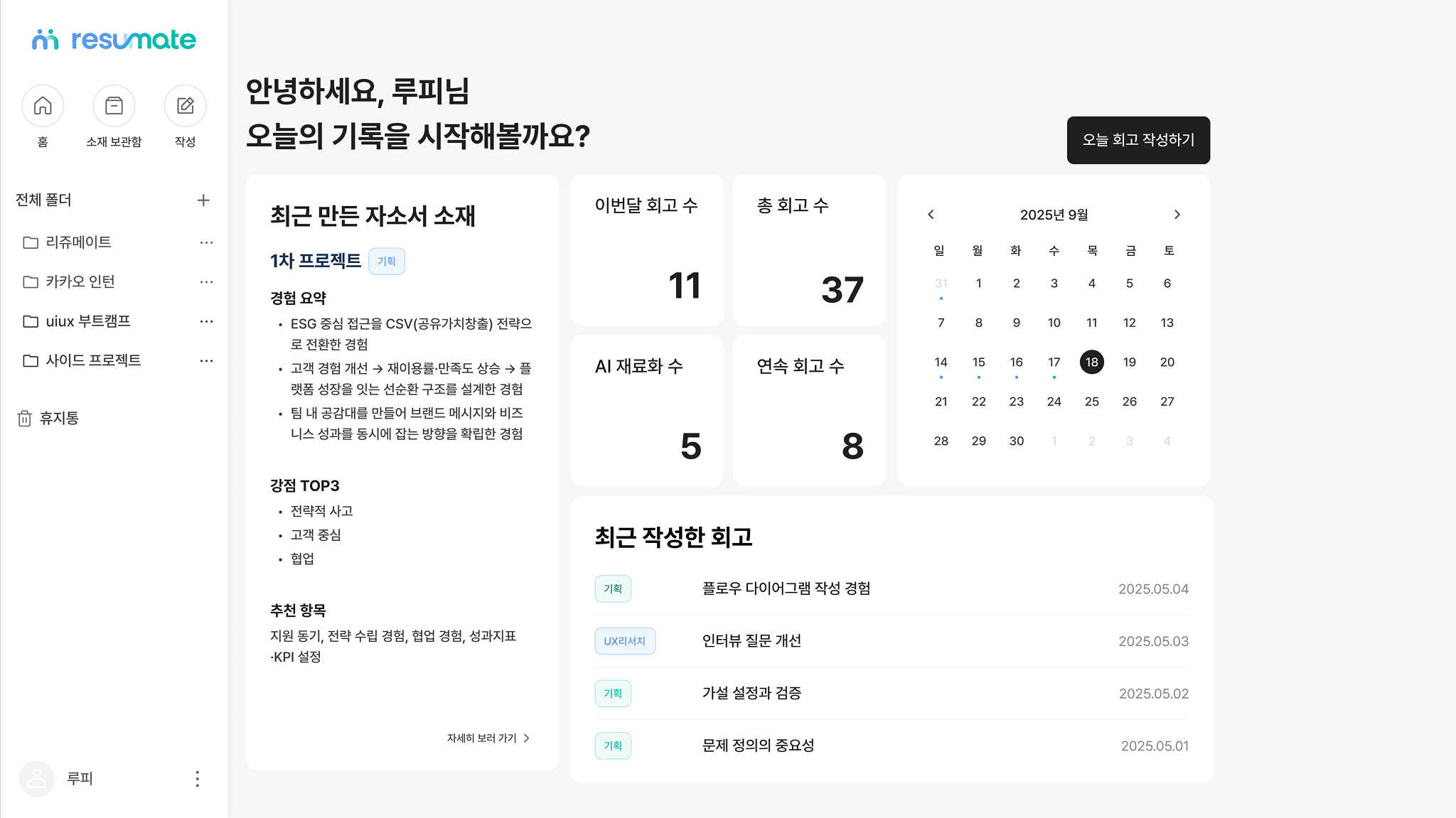 개인 경험을 기록·관리하는 프로젝트 회고 작성 서비스