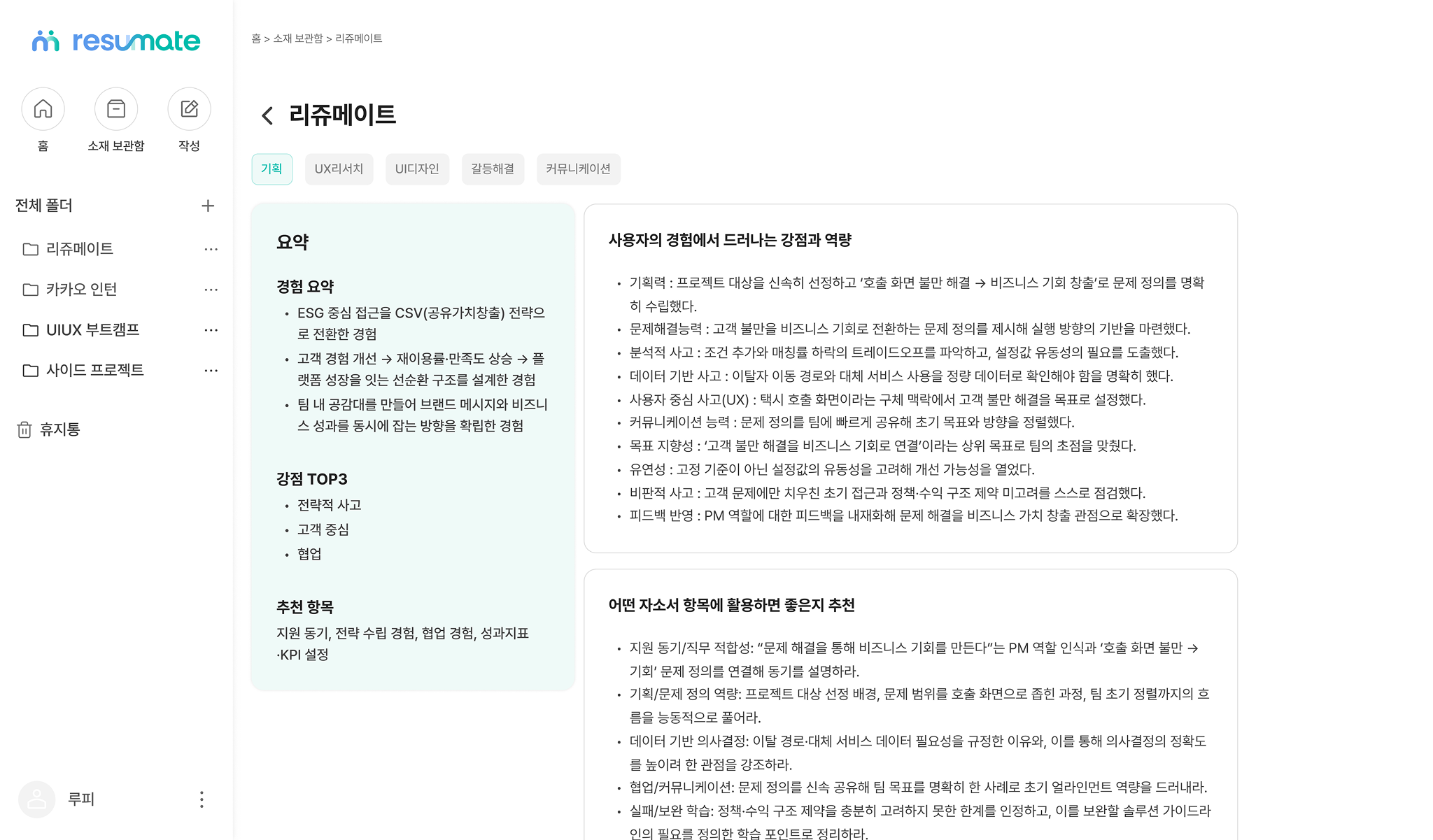 LLM을 이용하여 회고로부터 본인의 강점과 역량 등을 분석하는 기능 제공